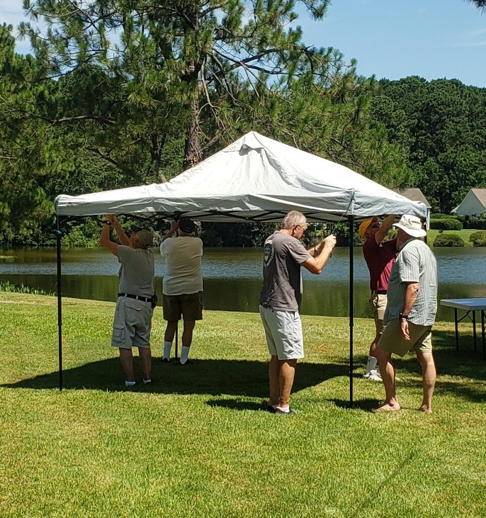 The KE4HAM CW Station’s “pavilion” being set up last June at Lake Somerset! It takes a lot of hands to get things done correctly!