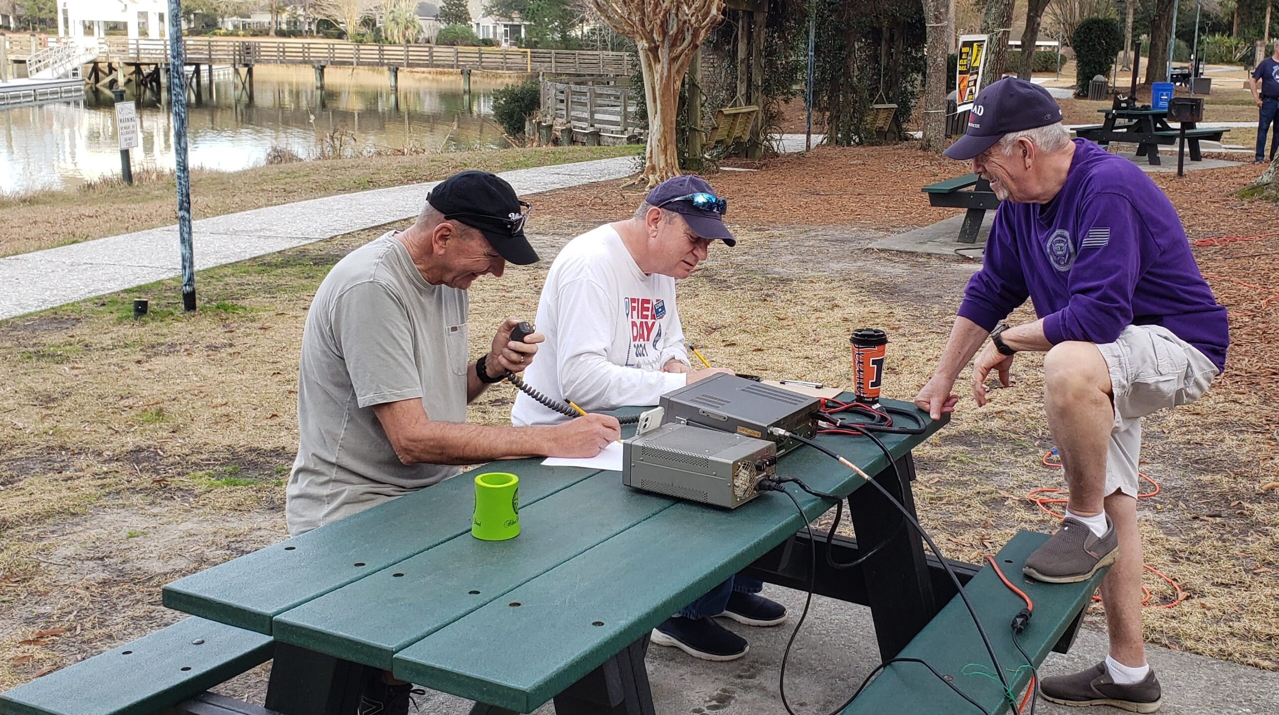 Winter Field Day 2024. L to R: Stan Grabiec (KD8VL), Bob McCormick (KD8IH), and Chip Miller (KQ4JKI). Does it look like these hams are having fun?